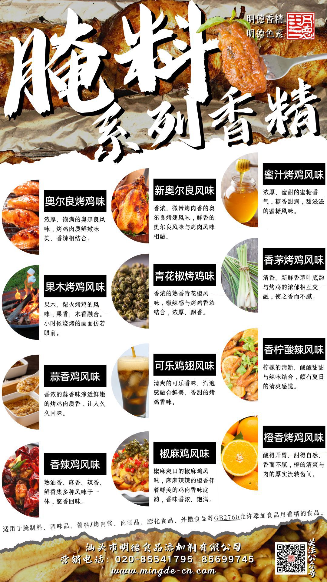 適用范圍:腌制料、肉制品、調味品、醬料、烤肉醬、膨化食品、復合調味料、麻辣食品、外撒料等GB2760允許添加食品用香精的食品。