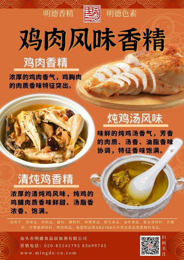 在雞肉香精領(lǐng)域我們潛心專(zhuān)研,結(jié)合市場(chǎng)潮流,消費(fèi)者喜好,汕頭市明德食品添加劑有限公司現(xiàn)有以下16種雞肉相關(guān)風(fēng)味的香精,供您選擇。并持續(xù)努力研發(fā)更多符合市場(chǎng)需求的風(fēng)味。