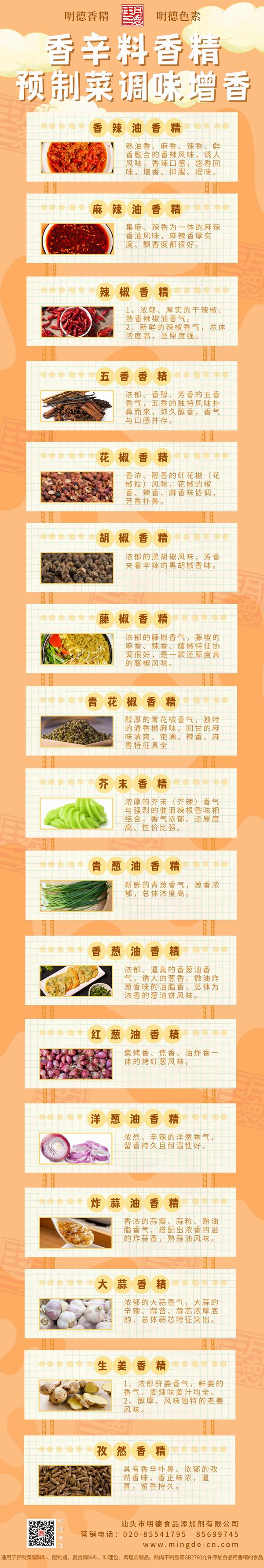 此外 明德食品添加劑 還研發(fā)了眾多香辛料風味類香精,如小蔥、青蔥、炸蔥,如藤椒、花椒、麻椒等等,近10年來在調(diào)味料、醬料、火鍋底料多有應(yīng)用,頗受好評。諸如此類,各有特色。歡迎有興趣的廠家朋友們咨詢聯(lián)系!-